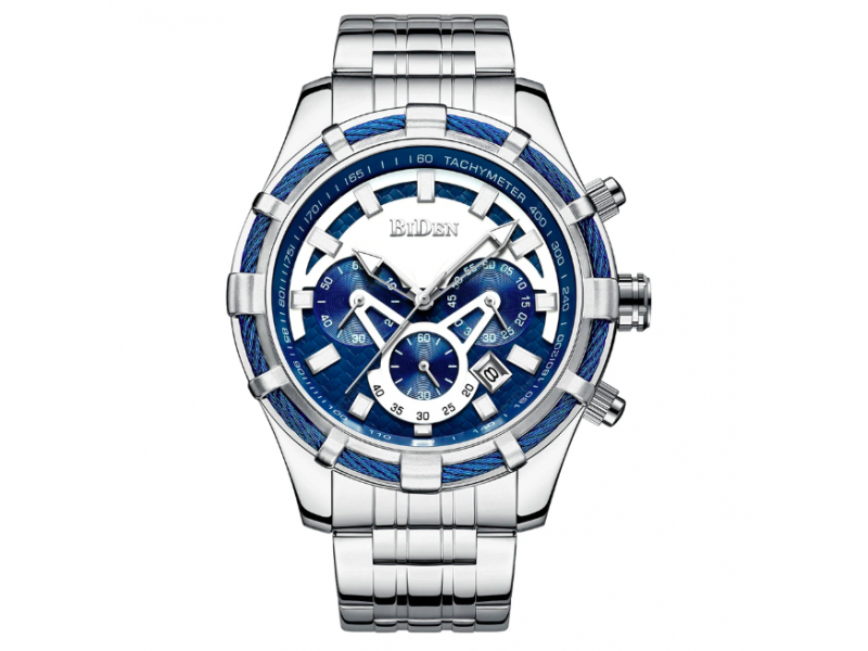 Relógio de Luxo de Pulseira de Aço Inoxidável BIDEN 0117 Impermeável - Azul